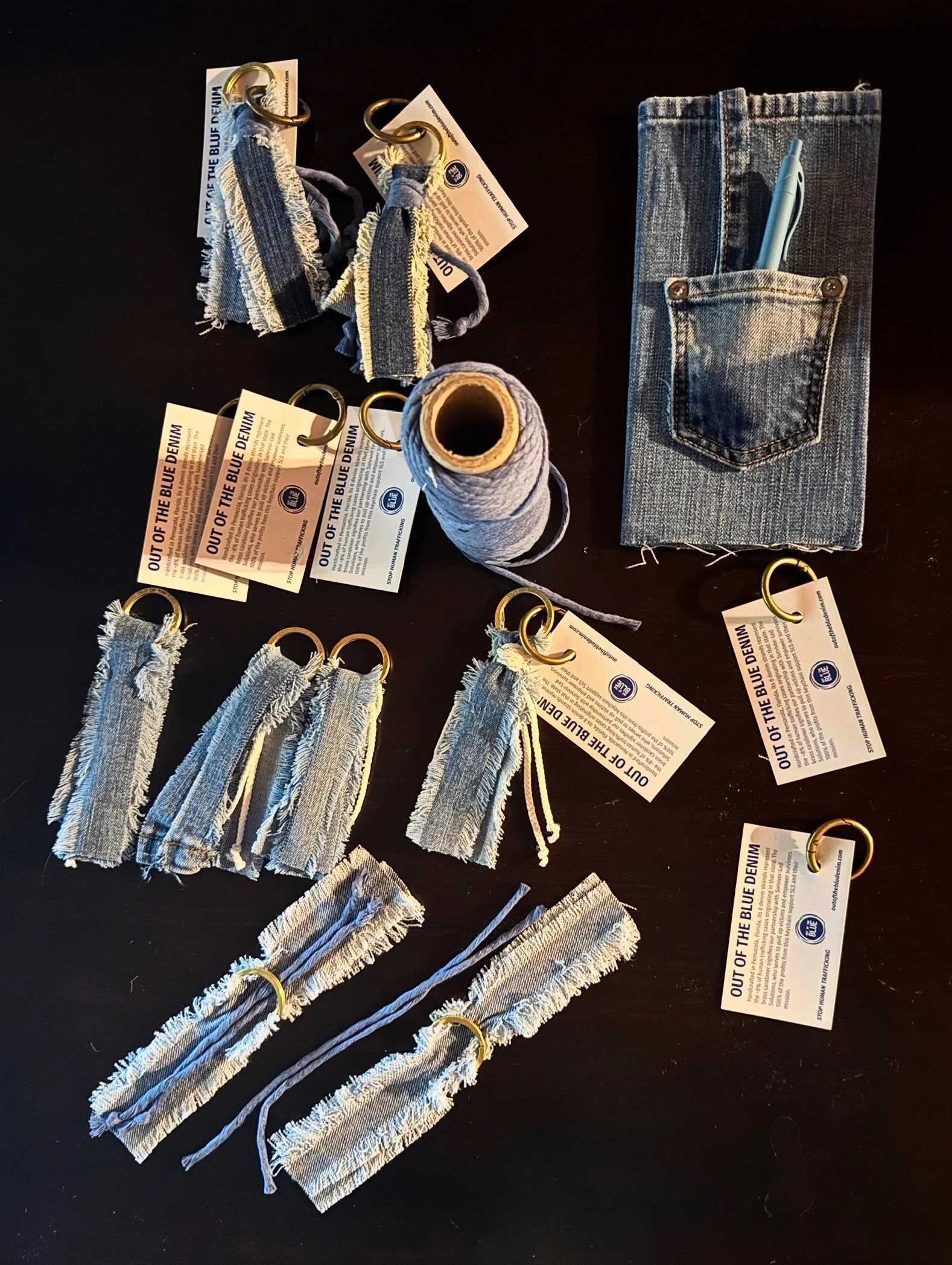 Our denim ripping event was a huge success! Everyone heard about the human trafficking epidemic in Florida and learned some great prevention strategies. Then all of us ripped denim for over an hour - enough to make 50 keychains!