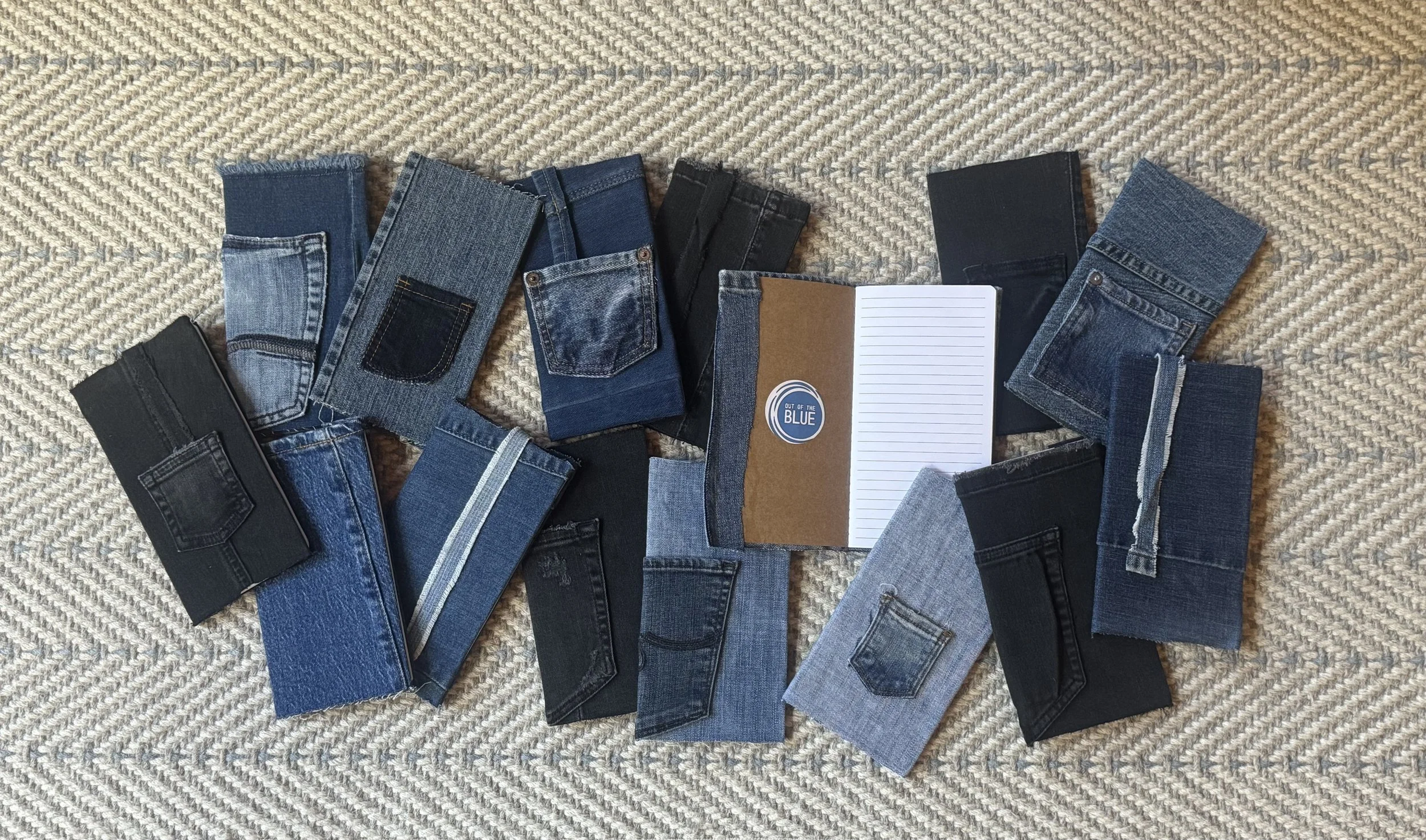 Many thanks to Chastity at Pointe South Realty in Pensacola; her generous denim donation supplied a hundred new keychains. Here she is with some of her reworked denim ready to give these to her clients!